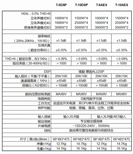 一、T系列全智能自适应数字功放。具有功率大,声道多,特别适合于大型线阵列和超大重低音箱的声还原。